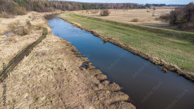 Rzeka z lotu ptaka. Zdjęcie rzeki z drona. Warta