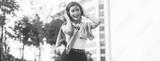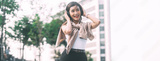 Youth asian woman wear wireless headphone listening music teenager gen z lifestyles