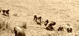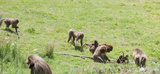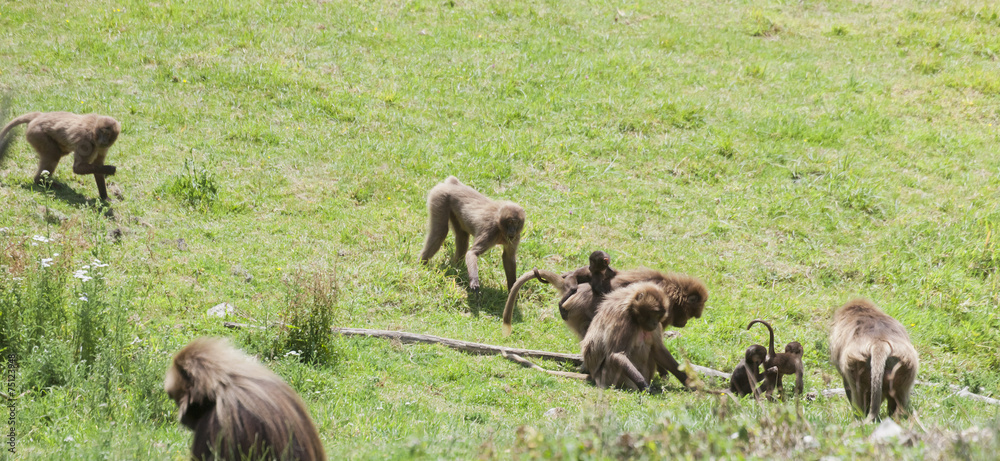 Gelada Baboon families grazing