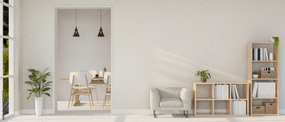 The interior design of a modern home corridor features a doorway leading through to a dining room.