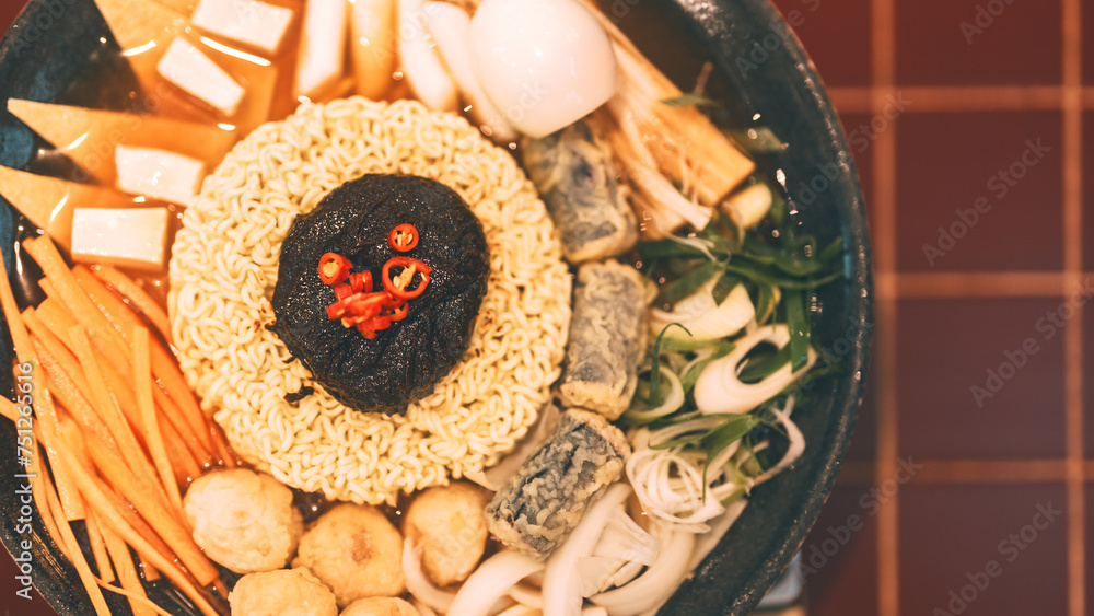 Asian Korean ramyeon noodles in hot spicy soup Korea local food menu