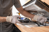Kitchen Appliances Installer Checking For Gas Leaks Using a Detector