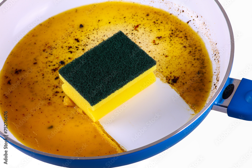 Sponge in clean a frying pan