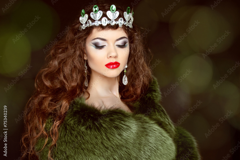 Beauty Fashion Model Girl in Fur Coat. Diamond jewelry. Beautifu
