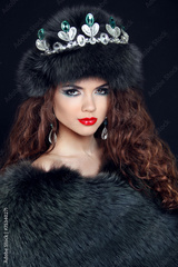 Beauty Fashion Model Girl in Fur Coat. Diamond jewelry. Beautifu