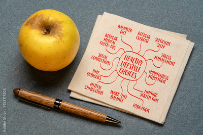 examples of healthy lifestyle choices, mind map infographics, sketch on a napkin