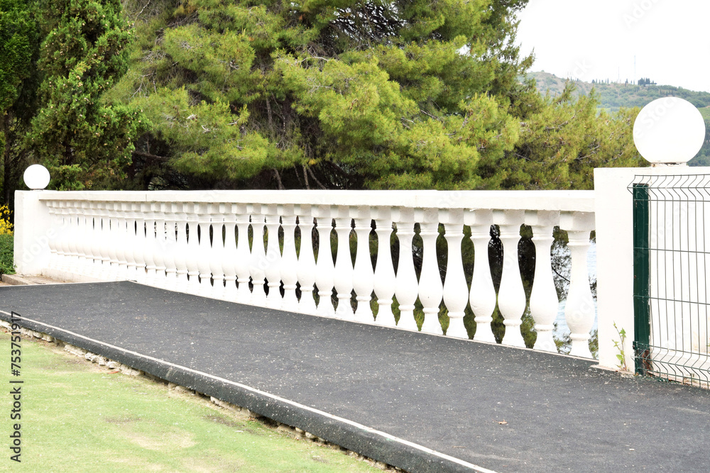 Spain. Marble railings with balusters in a city park