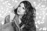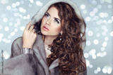 Beauty Fashion Model Girl in Mink Fur Coat and furry hood. Beaut