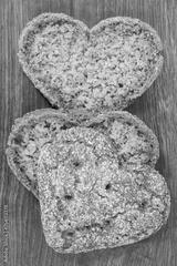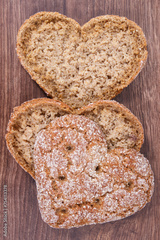 Fresh wholegrain bread in shape of heart for breakfast