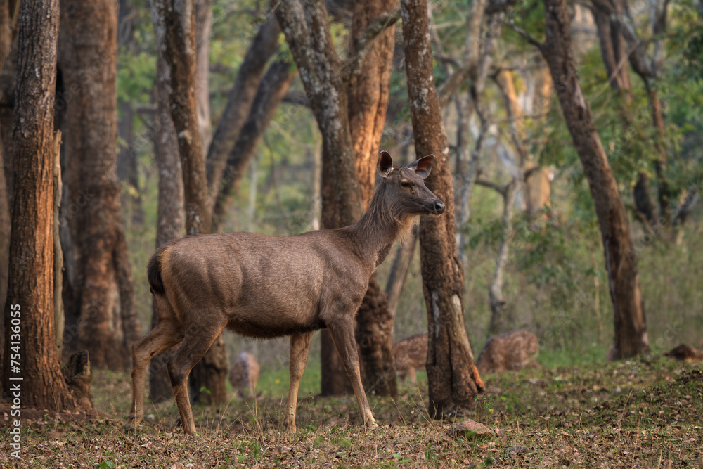 Sambar Deer - Rusa unicolor, large iconic deer from South and Southeast Asian forests and woodlands, Nagarahole Tiger Reserve, India.