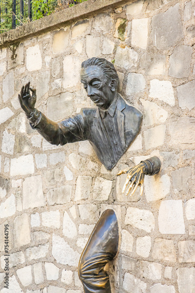 Sculpture of the Passe-Muraille on the place Marcel Aymé in Paris Montmartre