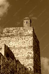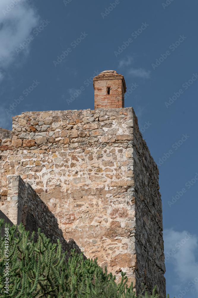 Sagunt, Valencia - Spain - View of the castle in Sagunt, showcasing thick walls, a large gate, partially ruined buildings and foundations
