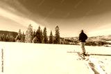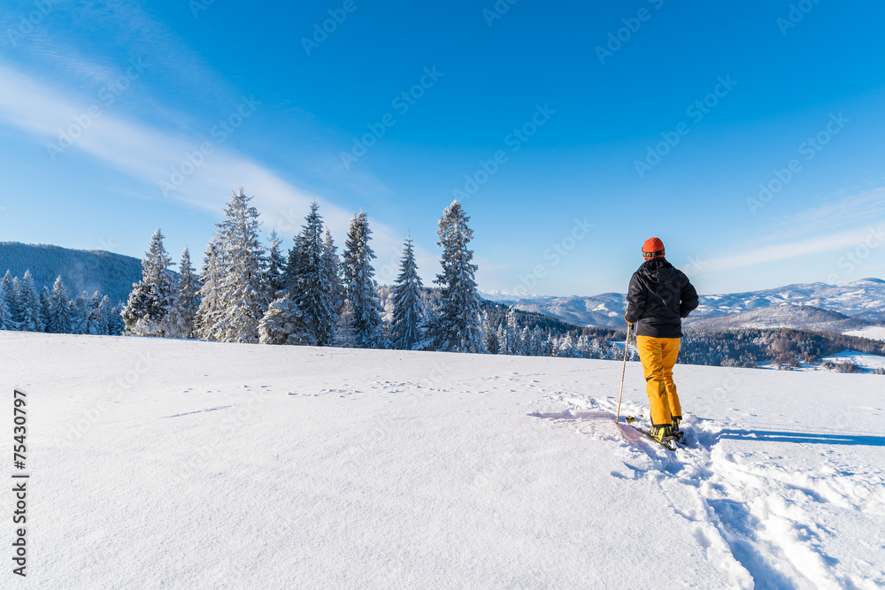 Skier on track in winter landscape, Beskid Mountains, Poland