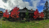 houses with beautiful architecturee and picturesque nature in autumn. szklarska poreba, karkonosze, poland
