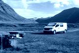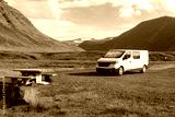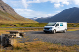 Campervan parked at resting area in Westfjords, Iceland. Adventure and road trip concept