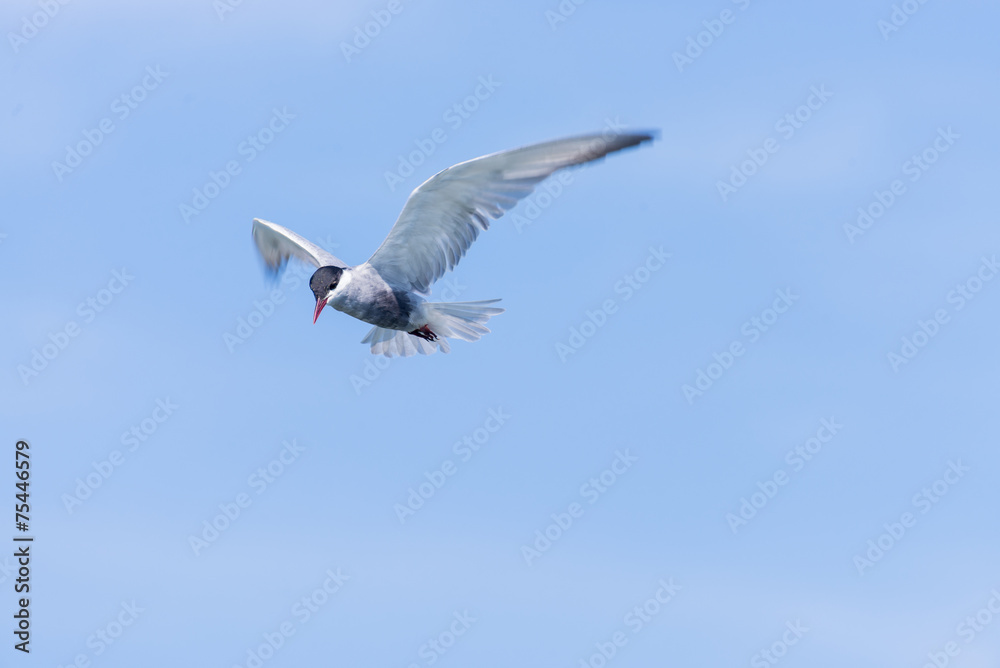 white sea bird flying blue sky
