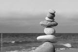 The fall of the pyramid of balanced stones. The concept of fall risk and unstable equilibrium.