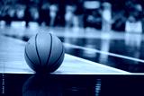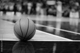 Basketball resting on a court during a big championship game. Copy space and great basketball concept photo