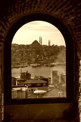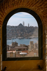 Suleymaniye Mosque and cityscape of Istanbul view from a window of Galata Tower