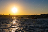 Istanbul view at sunset from a ferry. Visit Istanbul concept