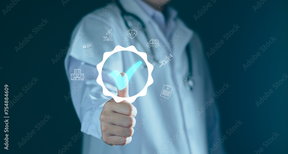 insurance concept. Doctor holding virtual online digital insure for car, travel, family, life, financial and health insure. When an accident occurs.
