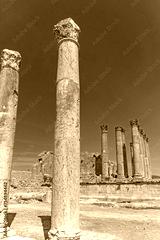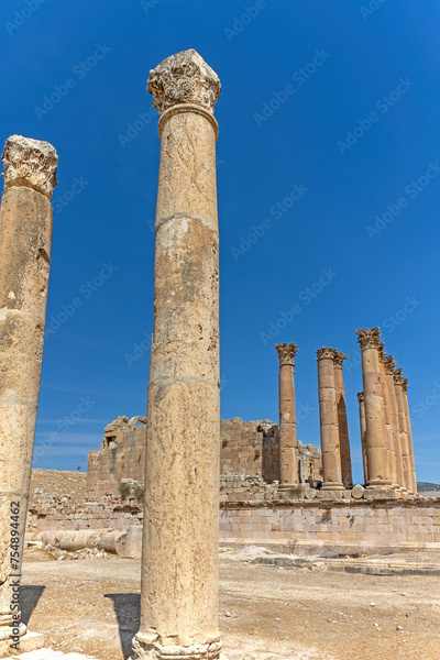 Pillars in Jerash. The temple of Artemis is in the background.. Vertically.