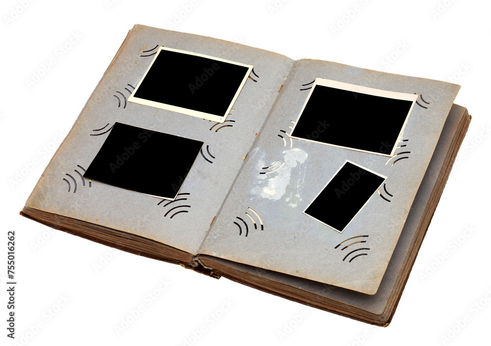 old photo album isolated on transparent background, PNG clip art.