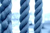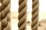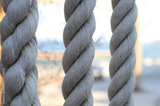 Marine rope. Fence with thick rope. Mountaineering rope. Synthetic fiber.