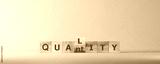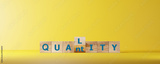 Dice form the words "QUALITY" or "QUANTITY" on wooden cube block for business start up concept.