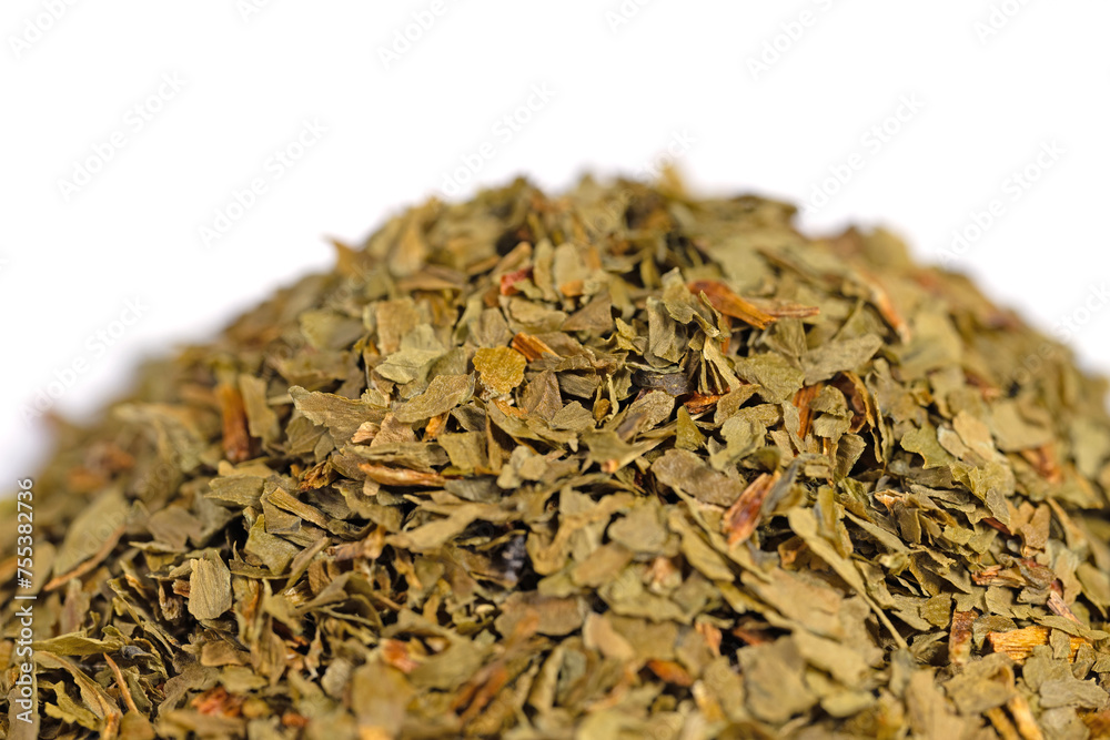 Getrockneter, gerebelter Bärlauch vor weißem Hintergrund