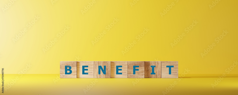 BENEFIT word made with building blocks.