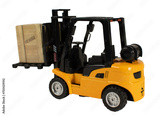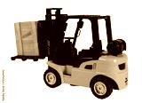 A forklift is lifting a box that says fragile