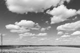 A bright yellow field of canola and blue sky with fluffy snow-white clouds.