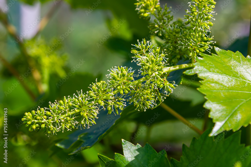 flower buds and leaves of shoots grapevine spring, agriculture nature background