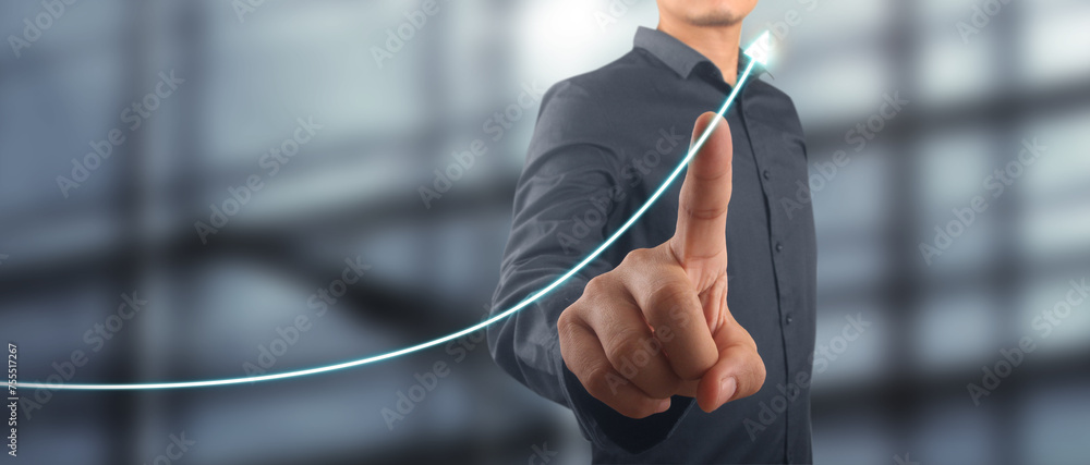 Businessman plan graph growth and increase of chart positive indicators in his business