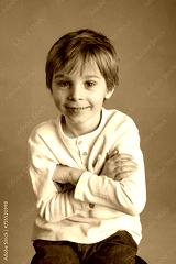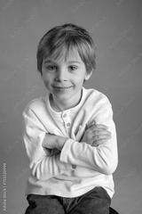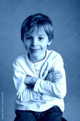 Artistic portrait of a child, boy, lightened with gel filters, studio shot