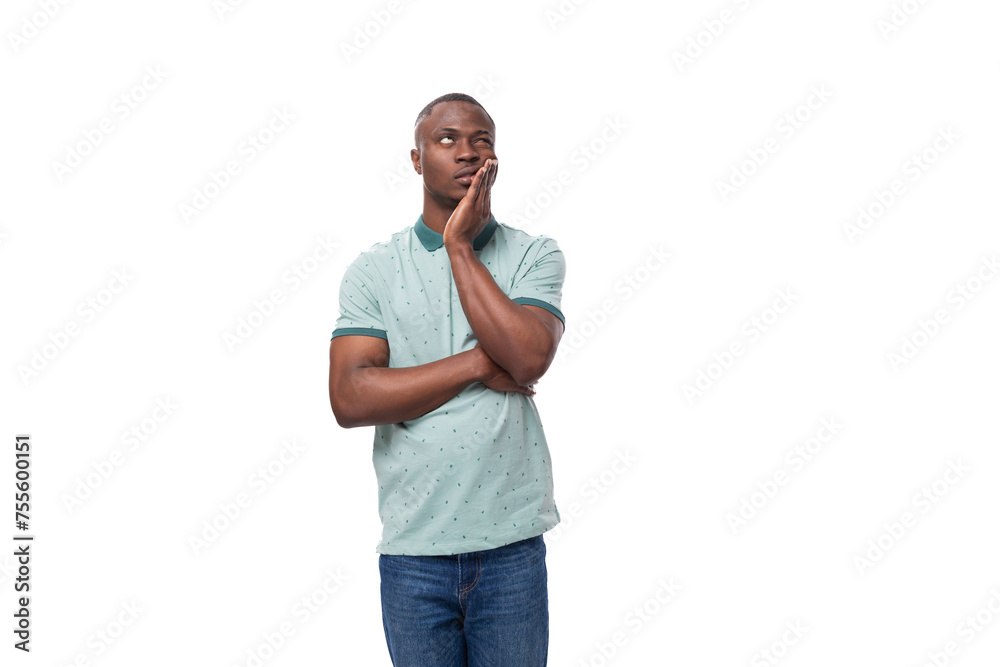 young handsome smiling african man dressed casually having doubts and thinking