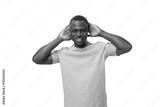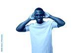 young smart handsome african man in lilac t-shirt thought