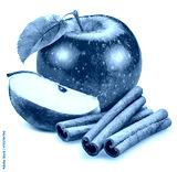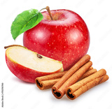 Red apple, apple slice and cinnamon sticks isolated on white background.