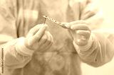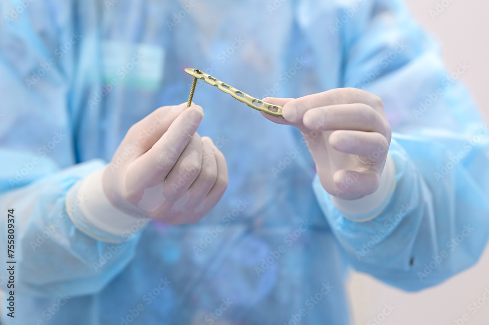 Doctor chooses orthopedic bolts and screws for surgery