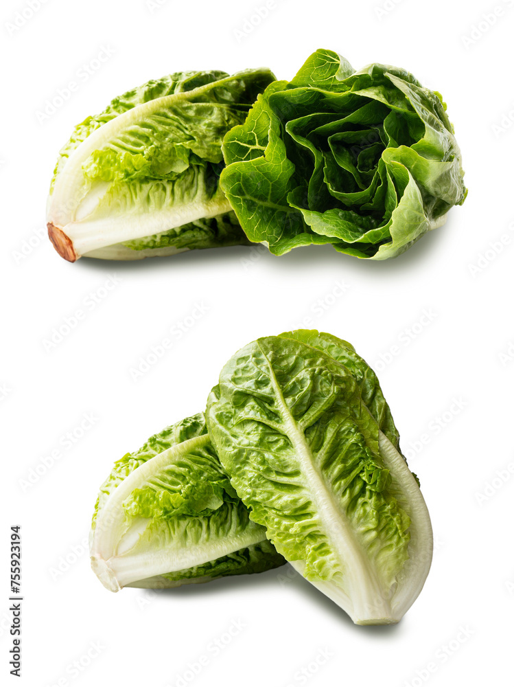 Fresh green Romaine lettuce (Lactuca sativa) isolated on a white background. Fresh green romaine lettuce isolated on white.