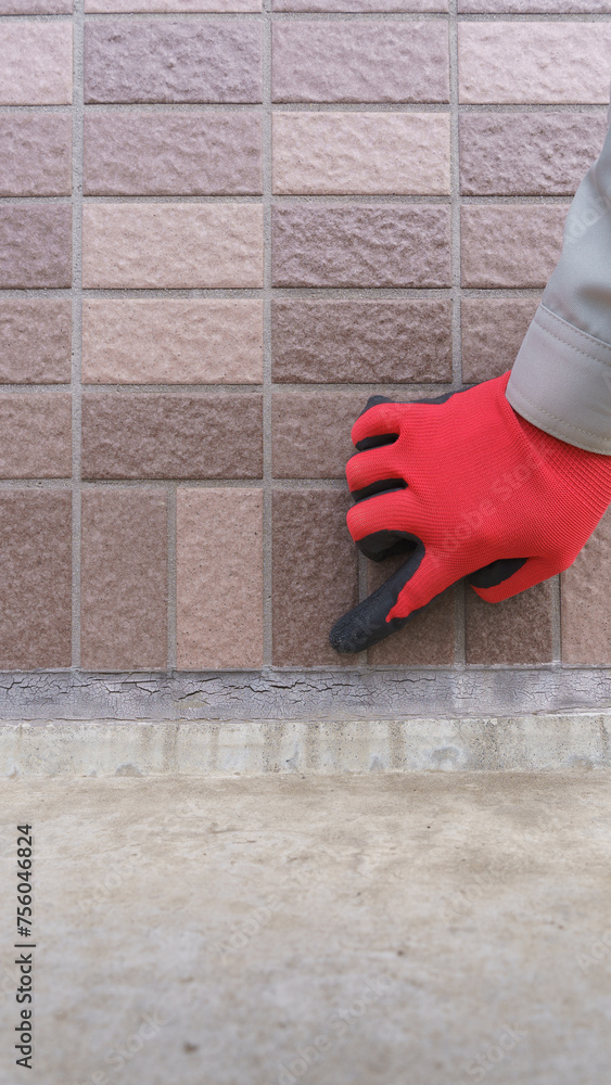 外壁を点検する作業員|目地の劣化