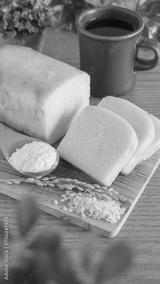 米粉パン・イメージ|米粉パンと米粉と白米と稲穂