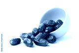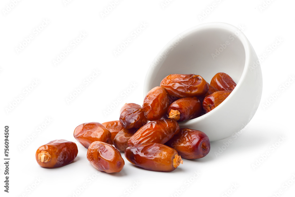 Dried dates fruits with white bowl isolated on white background.