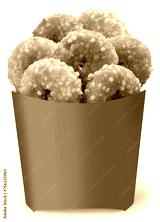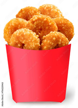 Fried Fish donuts in paper bucket isolated on white, Fried fish donuts Isolated on White background, With work path.