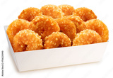 Fried Fish donuts in paper bucket isolated on white, Fried fish donuts Isolated on White background, With work path.