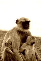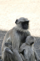 Portrait of Gray Langur with baby in Ahmedabad, India
