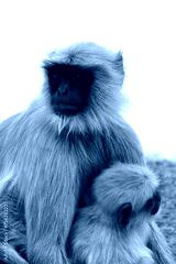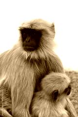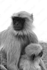 Portrait of Gray Langur with baby in Ahmedabad, India