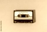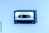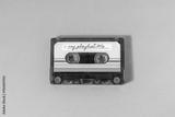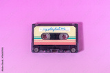 Transparent audio cassette with my playlist label on fuchsia background.