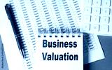BUSINESS VALUATION text on notebook with chart , pen and calculator